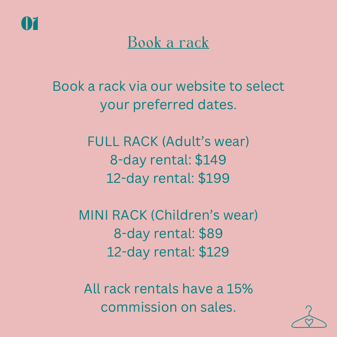 Wardrobes get outgrown. Styles change. Kids grow. Life Moves. Instead of letting it sit, let it sell. Rent a rack for you or for your little one's pieces and give your wardrobe its next life. Shop preloved fashion for grown-ups and your little ones